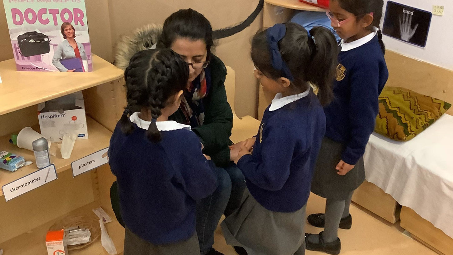 At KAPSH we promote a love of reading; the children enjoy visiting the library once a week, celebrating storytelling week, world book day and engaging in poetry competitions. Furthermore, we love to bring our stories to life through weekly ‘hooks’ to create excitement around the text. This could be a giant’s footprints left in the classroom, a secret fairy door appearing in the garden, or even a treasure hunt! These hooks create awe and wonder in our classrooms and encourage children to engage in role play, building their confidence and communication and language skills, this also provides opportunities for children to get into character and act out real life roles or fictional performance from the variety of stories and texts that they have been learning about.
